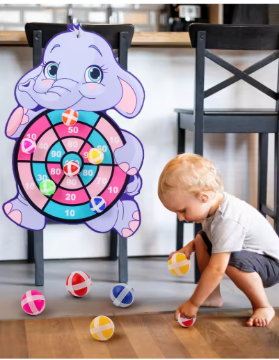 ألعاب مونتيسوري للأطفال من عمر 2 إلى 4 سنوات، لوحة رمي السهام على شكل حيوانات كرتونية، كرة لاصقة، ألعاب تعليمية تفاعلية عائلية للأطفال