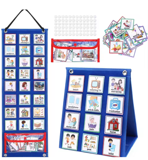 جدول مرئي للأطفال مخطط روتيني يومي مع 70 بطاقة تقويم جيب التوحد تعلم السلوك أداة للعب المدرسية