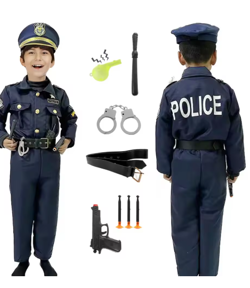 زي ضابط الشرطة للأطفال الأولاد والبنات زي الشرطي الموحد للعب الأدوار مع ملحقات الألعاب، فستان تنكري للأطفال