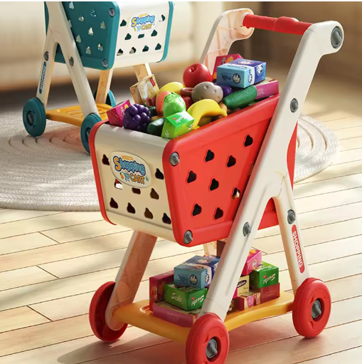 عربة التسوق لعبة طفل عربة صغيرة الأطفال يلعبون منزل قطع الفاكهة الموسيقى المطبخ سوبر ماركت الرجال والفتيات ألعاب التعليم المبكر