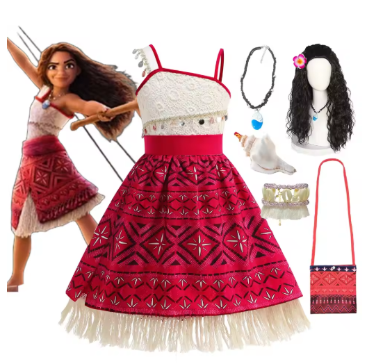فستان Moana 2 Ocean Adventure التأثيري للأطفال الأميرة Vaiana ملابس الأطفال الصغار كرنفال فاخر باثفايندر فستان الشاطئ بكتف واحد