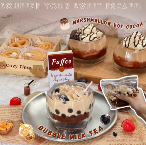 لعبة إسفنجية من السيليكون للشاي والحليب الفقاعي، كاكاو ساخن مارشميلو، لعبة لاصقة ناعمة كريمية، طابا اسفنجي، مشروبات بوبا