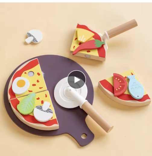 لعبة بيتزا محاكاة خشبية للأطفال، مطبخ بيت لعب الأطفال، هدية للأولاد والبنات، قطع البيتزا، هدية عيد ميلاد، هدية العيد