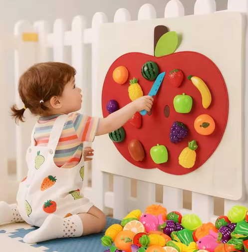 لوحة لباد الطفل لعب ألعاب الطعام الجدار ملصق الفواكه والخضروات التظاهر اللعب ألعاب المطبخ المهارات الحركية الدقيقة لعبة تعليمية مبكرة