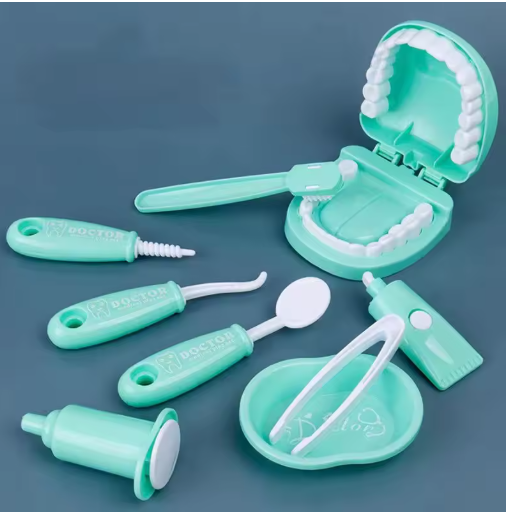 مجموعة لعب تظاهرية للأسنان مكونة من 9 قطع، مجموعة ألعاب تعليمية لطبيب الأسنان لمرحلة ما قبل المدرسة مع نموذج لشكل الأسنان، مجموعة أدوات طبيب للأطفال