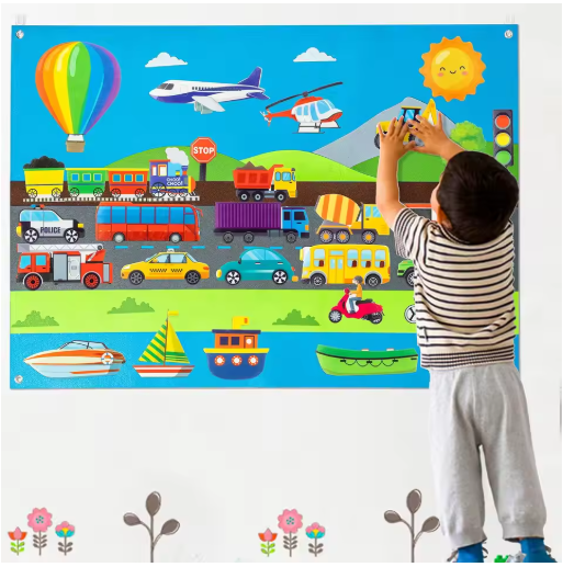 مجموعة لوحة قصة اللباد للأطفال، حيوانات المزرعة، التعليم المبكر، التعلم المبكر، حصيرة اللعب التفاعلية، هدية معلقة على الحائط