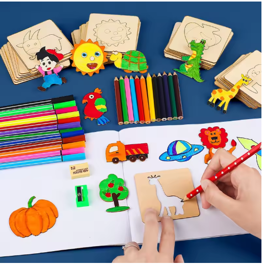 20 قطعة أطفال مونتيسوري رسم ألعاب خشبية دهان داي الإستنسل مجموعة لعبة الحرفية تلوين لغز ألعاب تعليمية للأطفال هدية