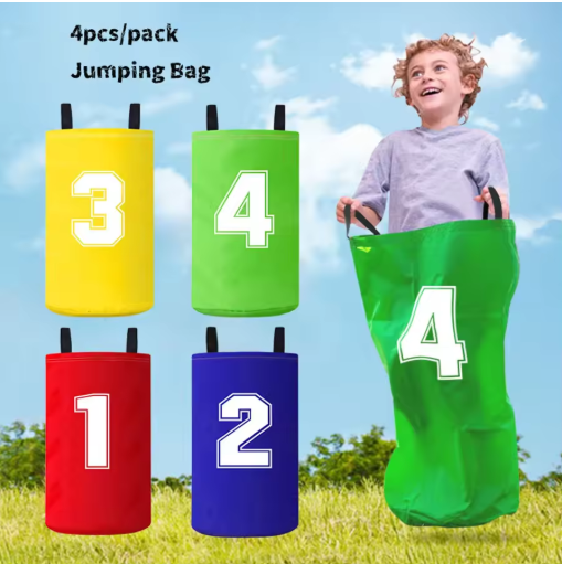 4 قطع من حقائب القفز الملونة للأطفال قابلة للطي وخفيفة الوزن للأطفال حقيبة سباق ميدانية محمولة سهلة الحمل ألعاب خارجية حقائب سباق خارجية