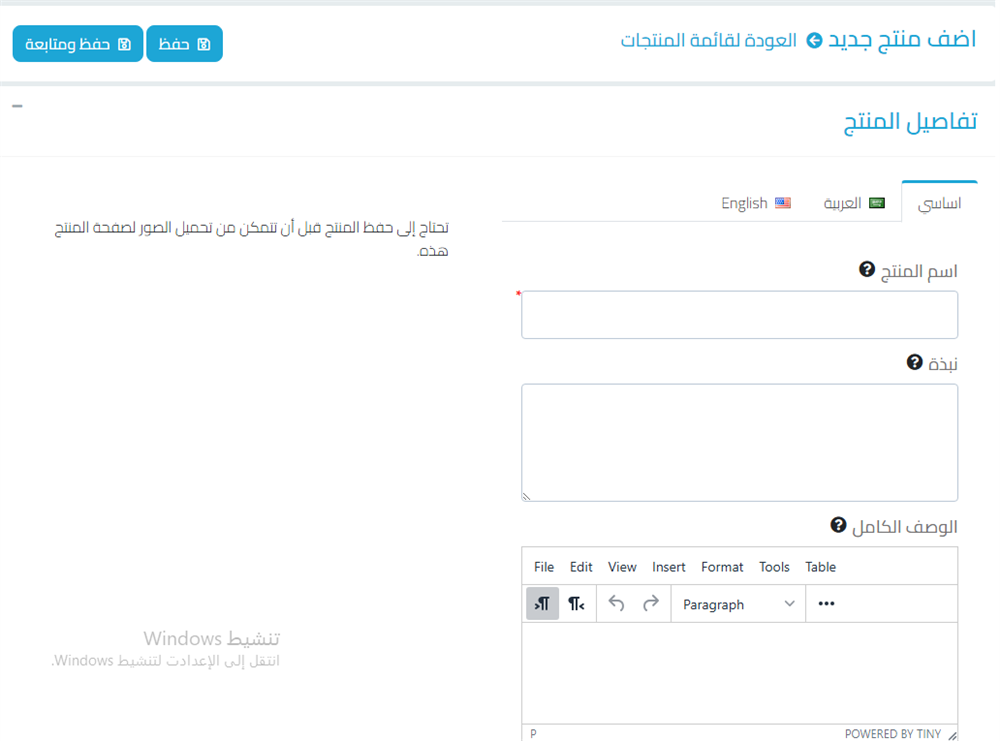 إضافة المنتجات