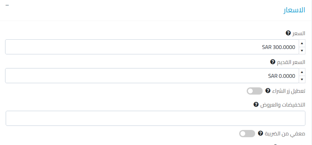 انتهينا من الخيارات الأساسية ولكن كيف يمكن اضافة السعر والصور والتخفيظات?
