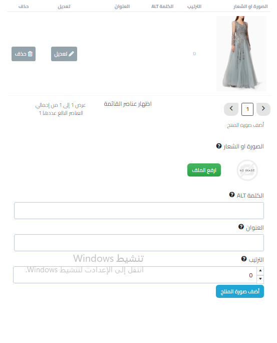 بعدها تقم بالضغط على أضف صورة المنتج وبالنسبة لخانة الترتيب وذلك لترتيب ظهور الصور في صفحة المنتج.