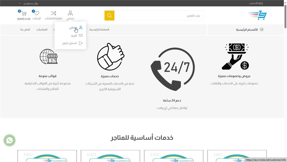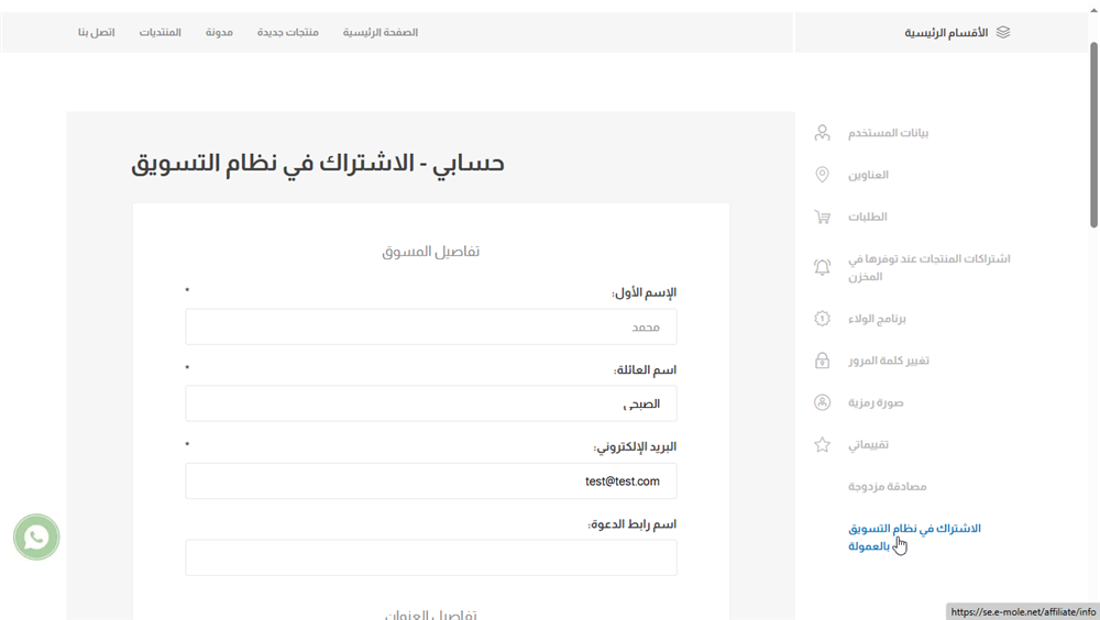 بخصوص اشتراك التجار في الباقات يكون عن طريق موقع المنصة الرئيسي وذلك يكون عن طريق استخدام نفس اسم رابط الدعوة الذي قمت بتسجيله فيه حيث سيحصل التاجر على خصم عند استخدام الكود عند الاشتراك حسب الاتفاق وبالنسبة لشراء الخدمات في مركز الخدمات يكون عن طريق استخدام نفس رابط الدعوة والذي يبدأ https://se.e-mole.net/?affiliate حيث ستحصل عليه في صفحة حسابك في المركز .