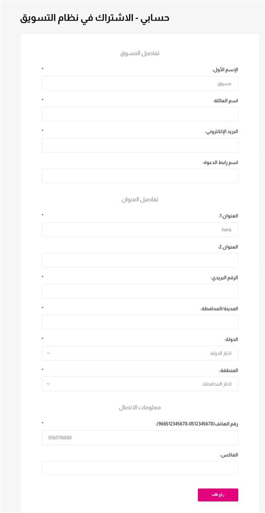 قم بتعبئة البيانات الاجبارية وقم بوضع اسم مختصر يمثل كود الدعوة الخاص بك بعدها قم بالضغط على رفع طلب سيتم الاطلاع على الطلب من قبل قسم التسويق كما في الصورة