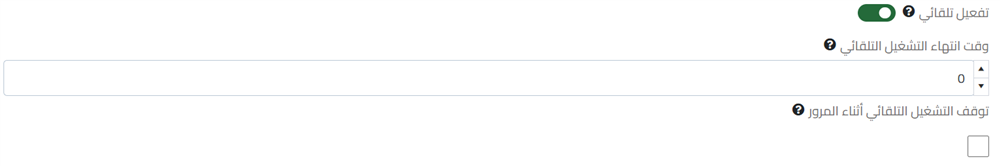 خانة وقت انتهاء التشغيل التلقائي المقصود به الفاصل الزمني في الحركة يعني كل كم ثانية يقوم بالتحرك إن تركته صفر كما هو فلن يتحرك ولن ان اضفت قيمة له سوف يتحرك حسب القيمة مثلا لو اضعنا 2000 اللي تساوي ثانيتين لأن 1000 تساوي ثانية سيبدأ بالتحرك لمدة ثانيتين ثم يتوقف وبعد ثانيتين يتحرك وهكذا .