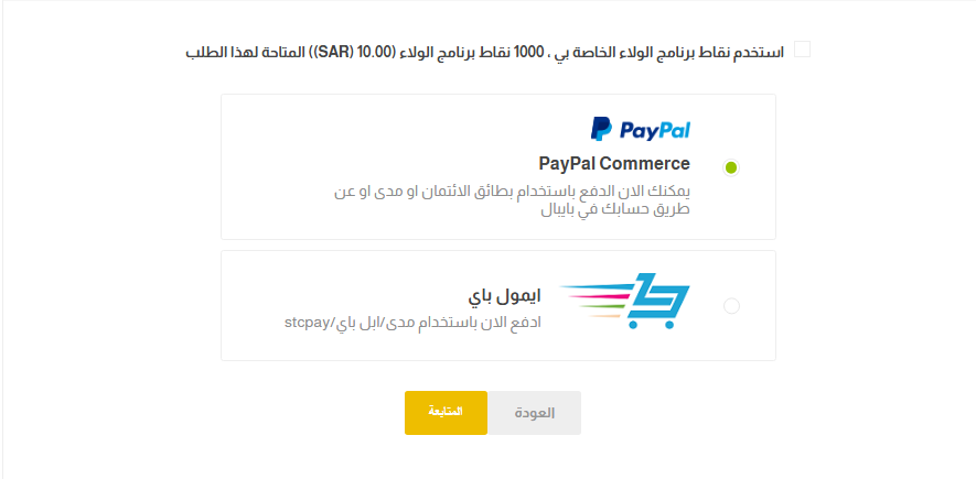 بعدها تقوم باختيار الخيار استخدام نقاط برنامج الولاء وسيتم خصم المبلغ من اجمالي الطلب تلقائيا.