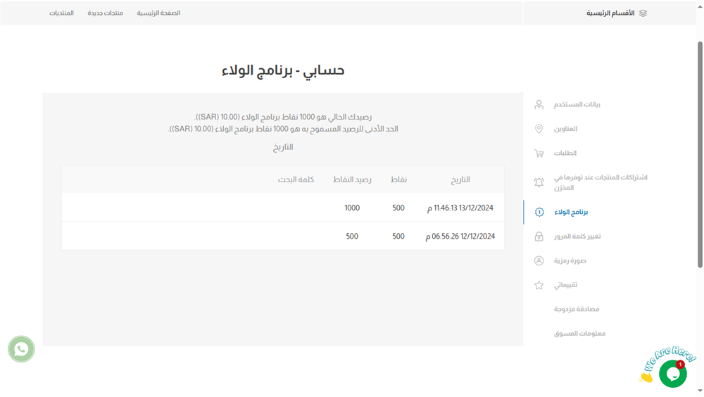 فتظهر لك صفحة توضح لك كم رصيدك الحالي وسجل العمليات الخاصة بالنقاط علما أن صلاحية النقاط هي 4 أشهر حيث إن لم يتم استخدامها لمدة اربع اشهر سيتم حذفها تلقائيا.