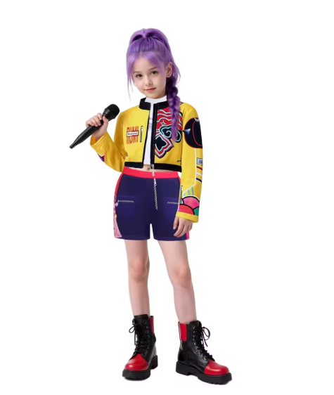 Kpop رومي زوي ميرا حفلة بنات شيطان زي الصيادين تأثيري الزي سترة أعلى السراويل الاطفال أزياء الهالوين المغني تأثيري