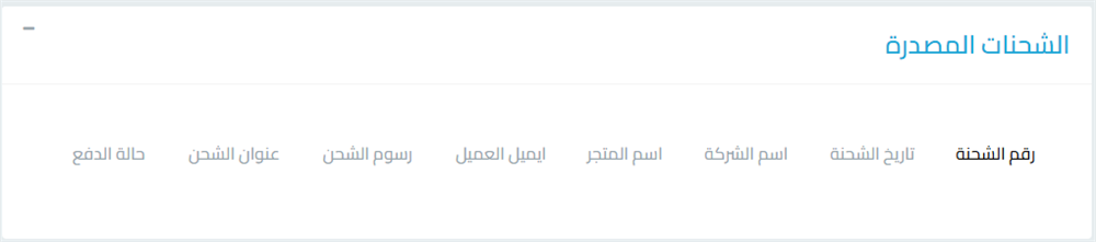 كما يمكن للتاجر معرفة جميع الشحنات المصدرة لشركة الشحن ودفع رسوم الشحنات عن تبويب الشحنات المصدرة