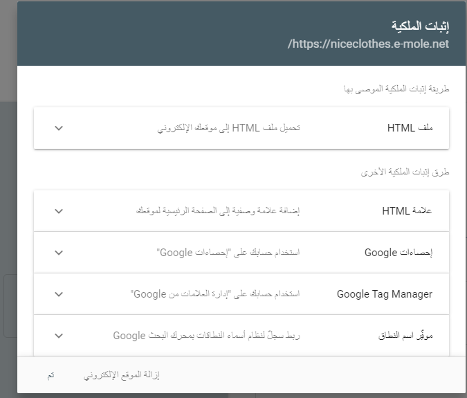 هذه باختصار ألية اثبات ملكية جوجل في متاجر المنصة كما يمكن اثبات ملكيته عن طريق dns ولكن هذه لاتنفع للمتاجر على الباقات المجانية وتكون عن طريق لوحة تحكم الاستضافة في بيانات الdns الخاصة بالنطاق.