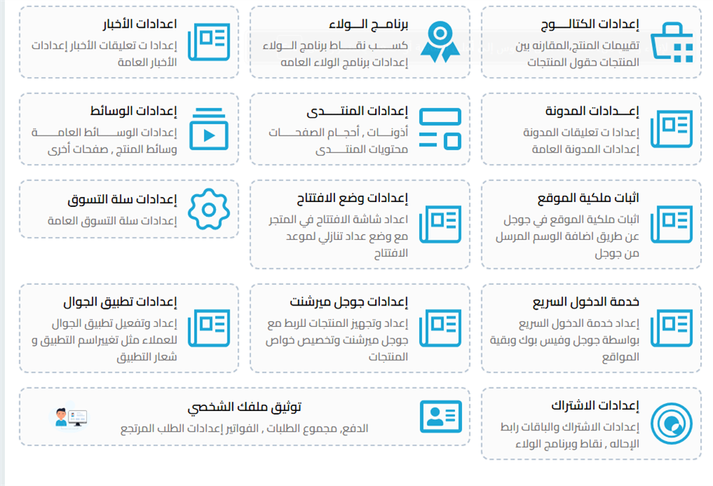 السلام عليكم ورحمة الله وبركاته عندنا اليوم لكم خدمة جديدة وهي اثبات ملكية المتجر في جوجل صحيح ان اثبات الملكية معروف في المتاجر ان يكون عن طريق dns او ملف يوضع في السيرفر وهناك طرق اخرى كثيرة منها طريقة الاثبات عن طريق كود اثبات الملكية الذي يوضع في الموقع عن طريق السيرفر ونحن هنا قمنا بعمل خدمة جديدة تقوم باضافة كود اثبات الملكية للمتاجر دون الحاجة إلى التواصل مع الادارة وهي خدمة اثبات ملكية المتجر في جوجل.